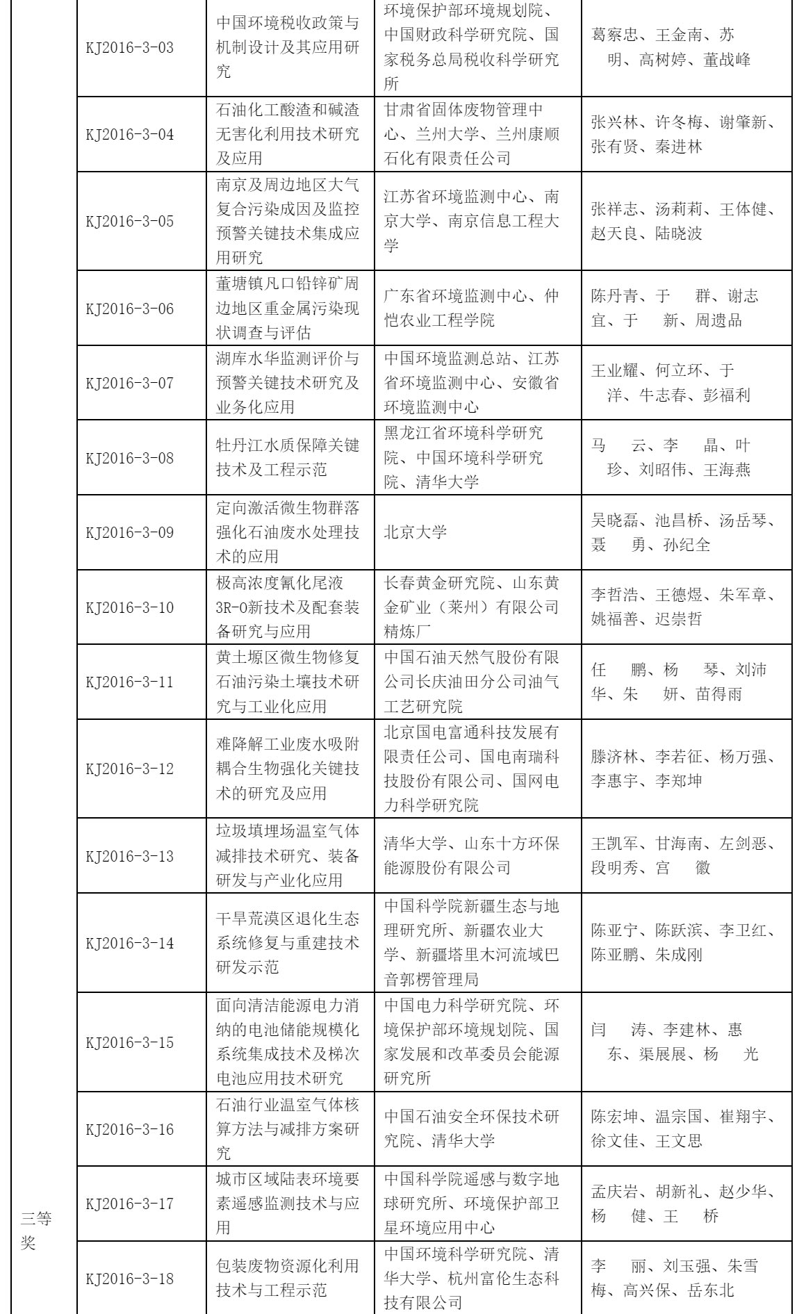 根据《环境保护科学技术奖励办法》的有关规定,2016年度环境保护科学技术奖拟授奖项目已经奖励评审委员会全体会议投票产生。为体现环境保护科学技术奖公开、公平、公正的原则,加强社会对环境保护科学技术奖励工作的监督,现将2016年度环境保护科学技术奖拟授奖项目予以公示,向全社会广泛征求意见。