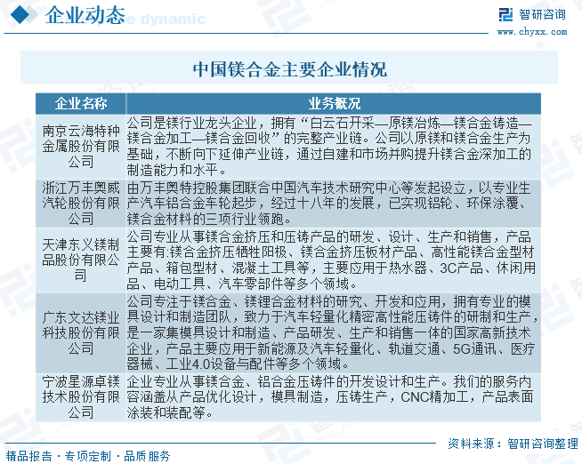 ●以上数据及信息可参考智研咨询(www.chyxx.com)发布的《2024-2030年中国镁合金行业市场发展潜力及投资风险预测报告》。