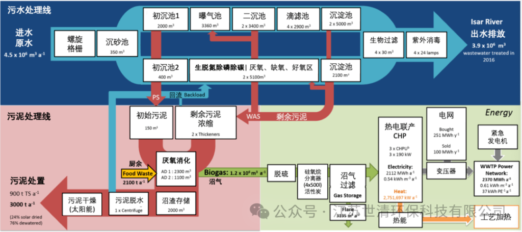 在德国Grüneck污水处理厂现场,研修班学习考察污水处理厂的迭代升级与新能源利用。Grüneck污水处理厂于1966年建成投运。目前最大处理能力约 28000 立方米,水厂员工 22 名。运营方除负责水厂运维外,同时负责运维约 230公里长的下水道管网包括 36 个泵站、3 个测量站和 7 个压力空气冲洗站。