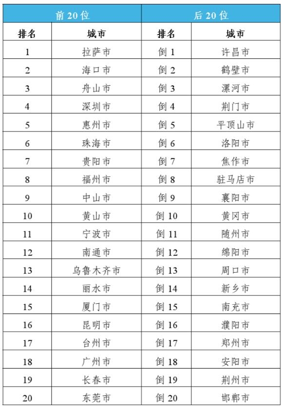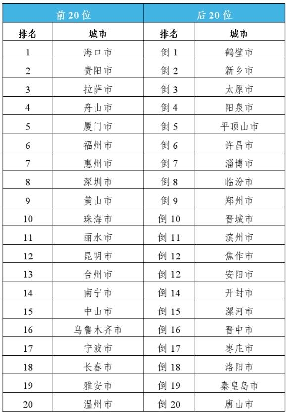 前20位和后20位城市名单