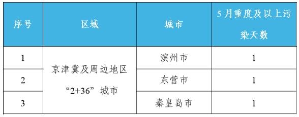 5月重点区域出现重度及以上污染天的城市及具体天数见附表3。